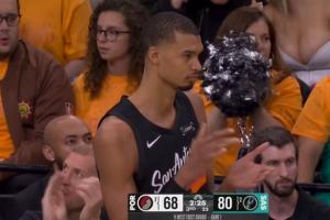 GIF-科内特补扣 文班起身鼓掌