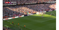 比赛第30分钟,托纳利禁区外得球远射,足球在空中突然变向,拉亚快速反应将球扑住,随后他又将球没收。