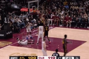 GIF-杰伦·约翰逊篮板犯规 老鹰挑战