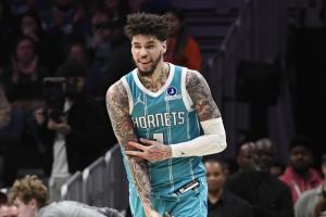 本场比赛,黄蜂当家球星拉梅洛·鲍尔上半场打得比较随意,但下半场恢复了合理的打法,全场他出战40分钟,31投仅12中、其中三分球16中2,加时最后时刻,三球先是关键失误,但随后准绝杀上篮完成救赎;全场,三球拿到30分5板10助!